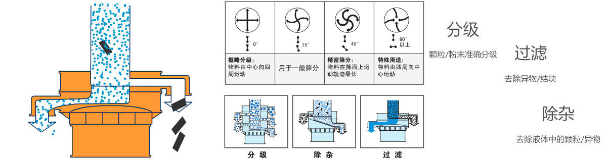 3.筛网不阻塞、粉末不飞扬、筛分较细可达500目(28微米)过滤较细可达5微米。